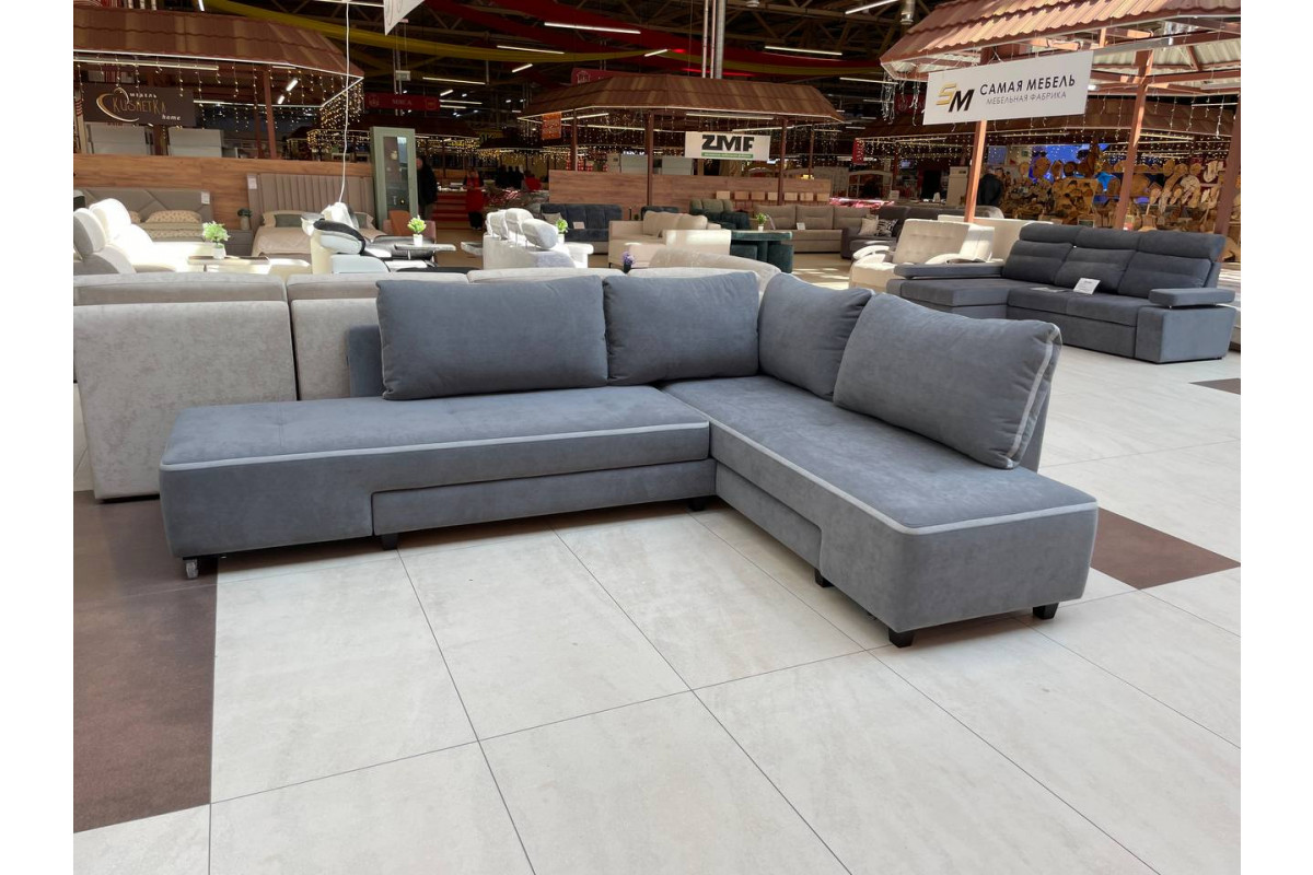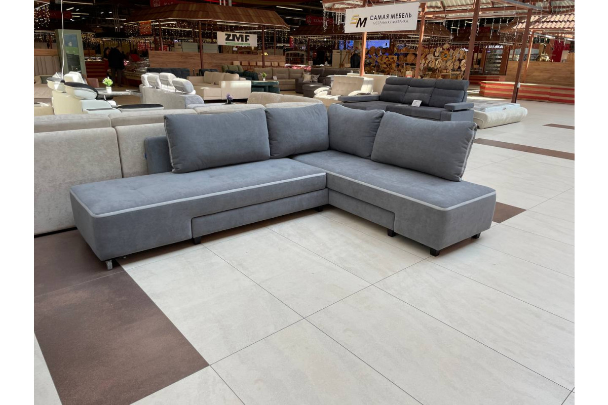 Раскладка: надежный механизм «Еврокнижка». В угловой конфигурации угол может быть с левой и правой стороны. В диване предусмотрен ящик для постельного белья.